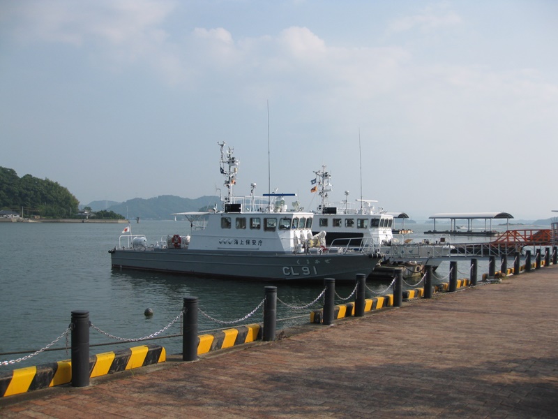 向こうに見えるのは架け替え工事中の1号橋(天草五橋の1番目)